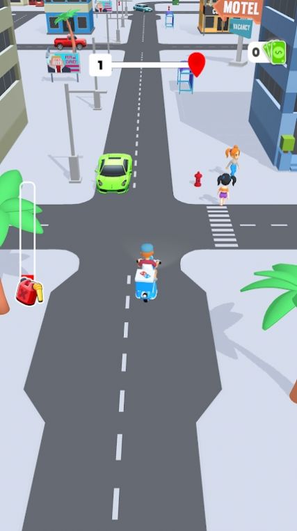 3、载具选择逻辑:短程关卡选速度快的摩托,灵活避障;长程选油量续航久的汽车,减少补油次数;根据关卡特点搭配载具,提升送货效率。