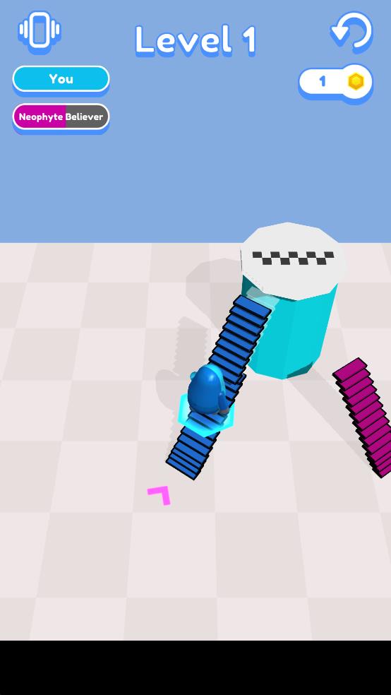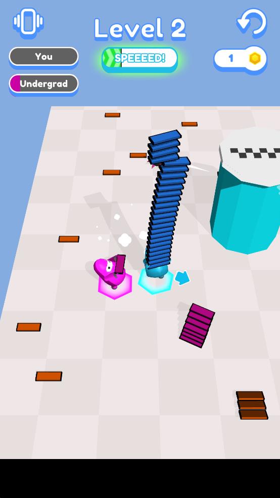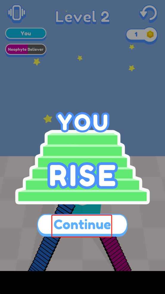 3、成功叠放一定数量的梯段后,即可获得胜利,然后我们点击Continue按钮,进入新的关卡。