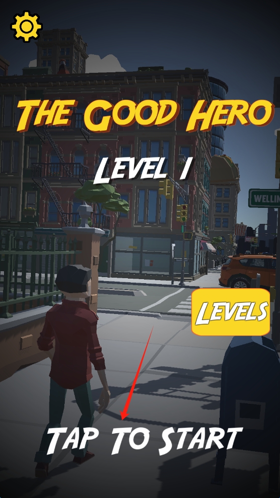 1、在THE-GOOD-HERO界面,点击Tap-to-Start,开启第1关的正义冒险,点击开始游戏。