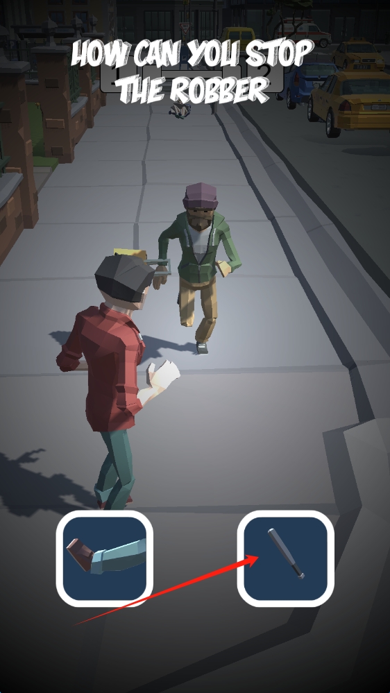 2、进入游戏场景,面对强盗,根据情况选择合适道具,如球棒,采取行动阻止强盗,完成关卡任务。