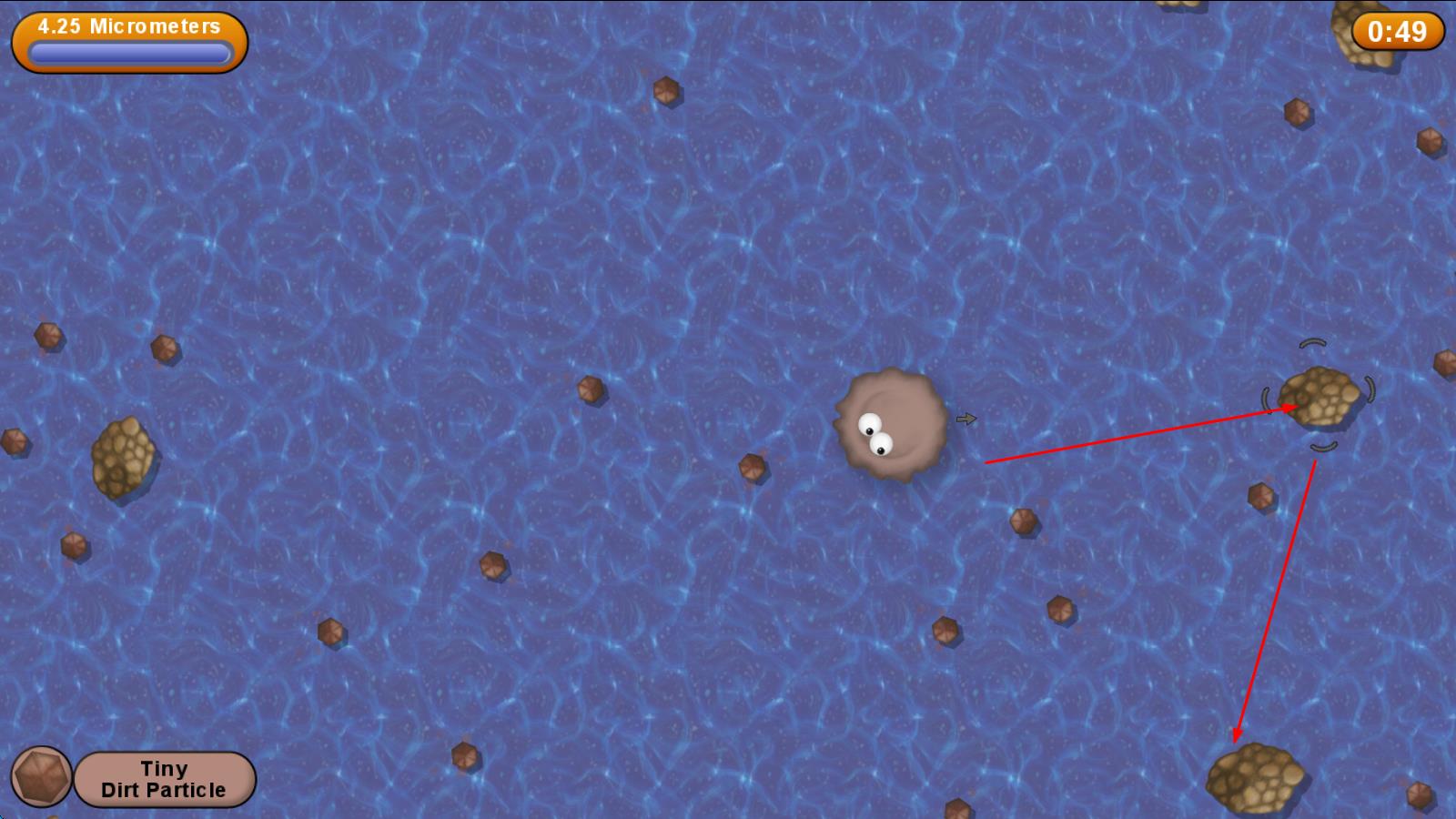 1、进入游戏后,操控博士研制的灰尘怪,在初始场景中吃掉所有能吃的脏东西,从小型污物开始,逐步积累能量壮大自身。