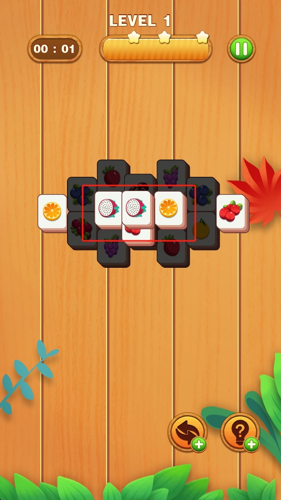 1、开局观察布局,优先找可直接连接、路径无阻挡的相同水果,如火龙果、橙子,点击配对消除,快速推进。