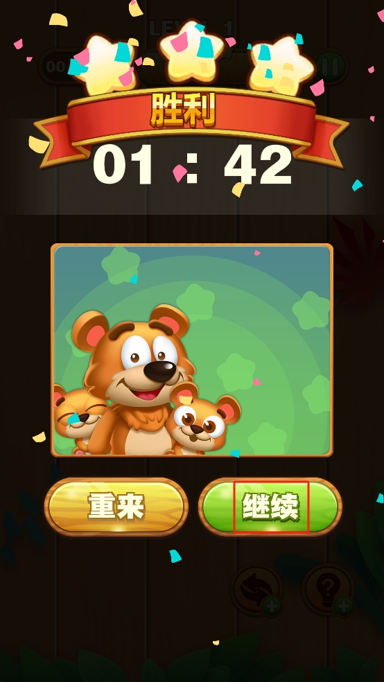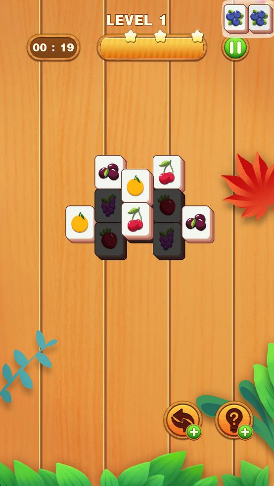 3、关卡胜利后,点击下方绿色的继续按钮,进入下一关,挑战更复杂水果麻将布局,延续消除节奏通关。