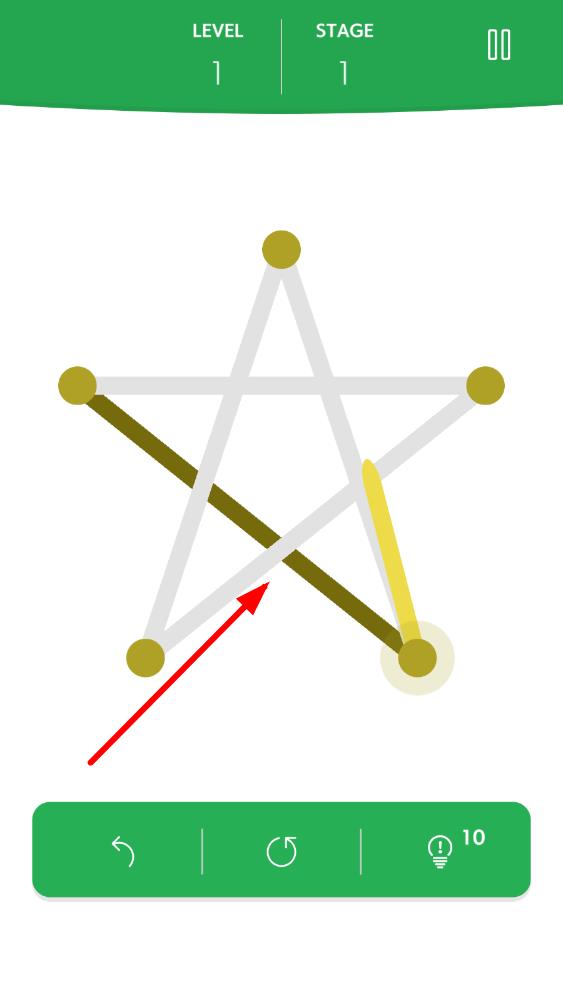 1、进入游戏选择关卡,观察图中点的分布,用手指从任意点开始画直线,尝试连接初始几个点,开启线条连线挑战。