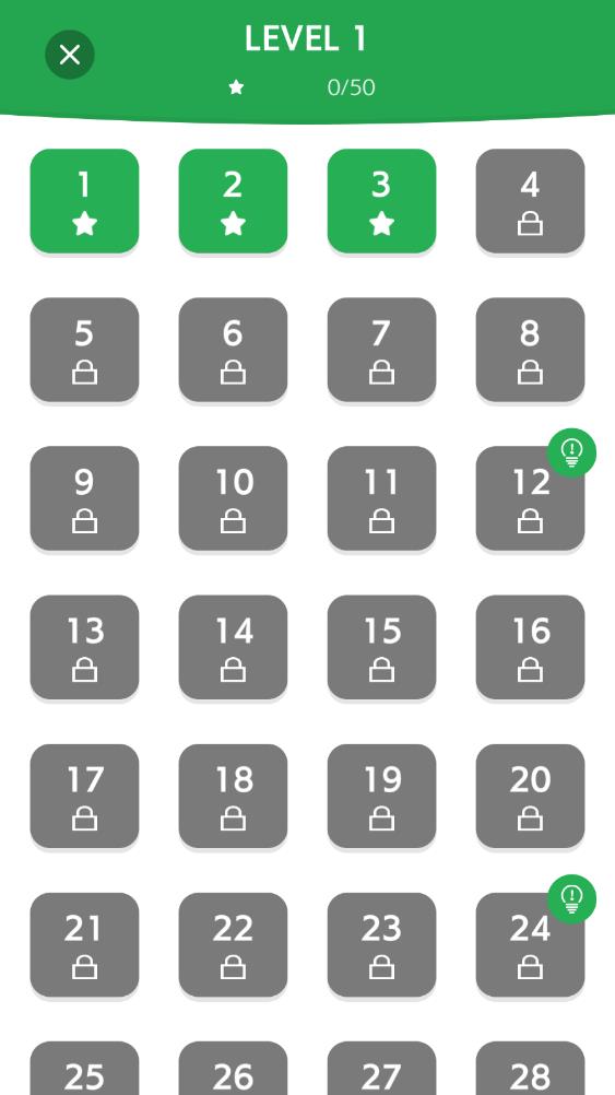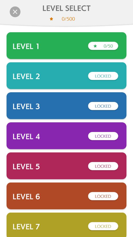 3、丰富关卡体系:设置10个级别共500个关卡,数量充足且难度梯度清晰,初期以基础形状入门,后期关卡点数量与布局复杂度飙升,为玩家提供长期且持续的思维挑战内容。