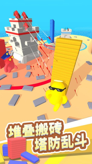 3、玩家通过快速收集砖块建造城堡塔防,扩大防御范围占领地盘,阻止敌人靠近,保护基地安全,体验塔防乐趣。