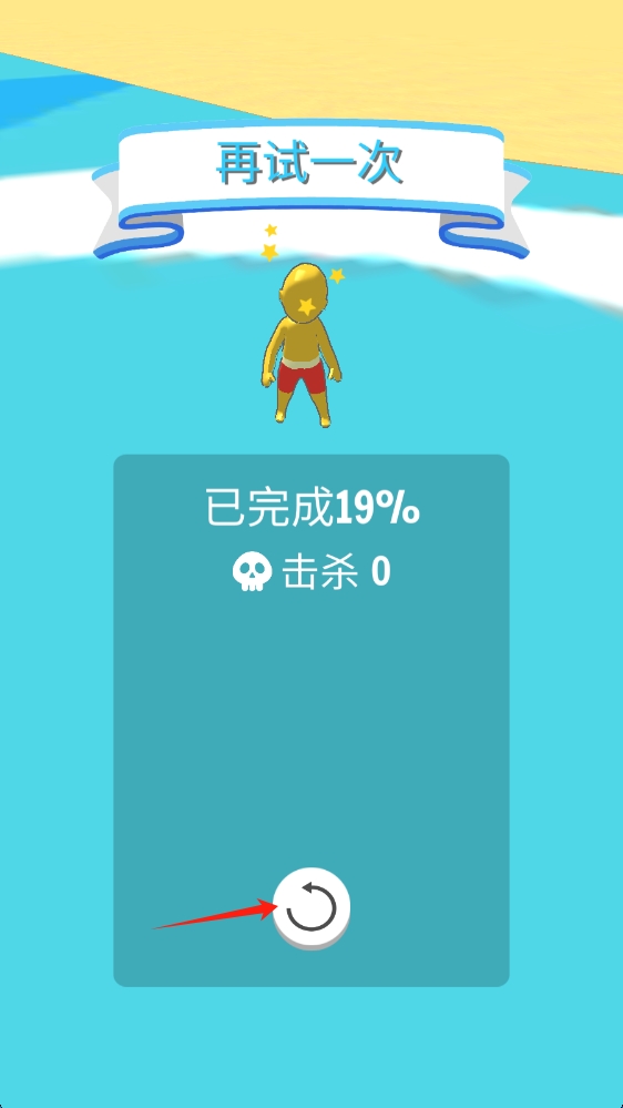 3、若游戏失败,在失败界面查看游戏完成进度和击杀数量,点击下方按钮重新挑战,争取在后续比赛中获得更好的成绩。