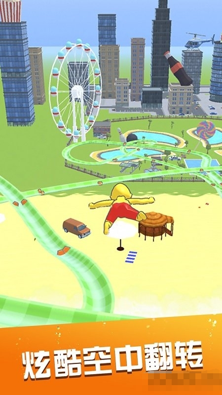 3、高难操作秀姿势:控制小人从高滑梯下滑,需以最快速度滑行,在飞跃时挑战高难度操作,秀出炫酷飞行姿势,展现操作技巧。