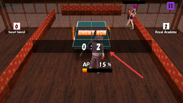 3、若显示ENEMY WON失败,重新挑战,调整击球时机和角度,提升技巧,冲击胜利、积累对战经验。