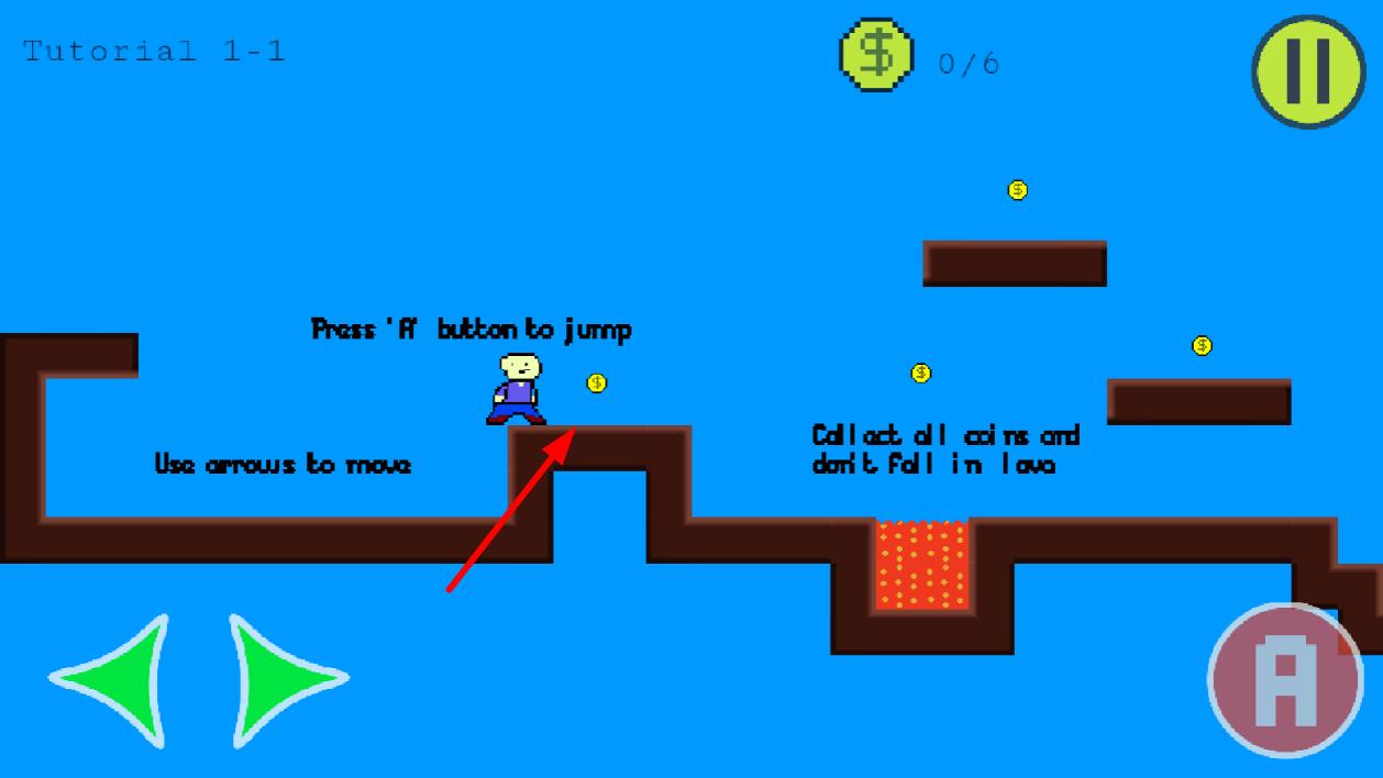 1、进入游戏后熟悉屏幕下方三个方向键,控制角色在初始砖块上尝试跳跃,踩踏砖块向上移动,收集首个金币开启冒险。