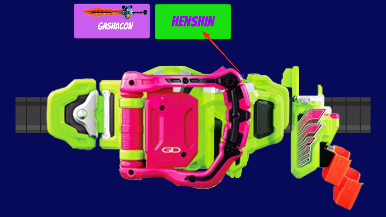 1、看到假面骑士腰带界面,想变身就点绿色Henshin按钮,点完后,腰带会触发变身音效,模拟假面骑士变身过程,感受变身的炫酷。