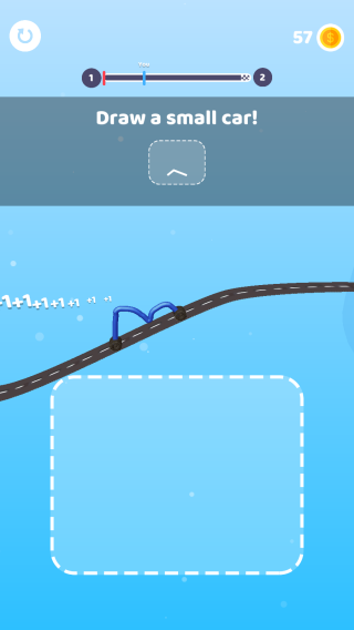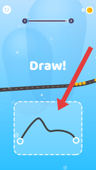 2、根据指引需要手绘相同的图案去进行绘制,绘制出的车辆可以进行行驶,遇到的金币也需要拾取。