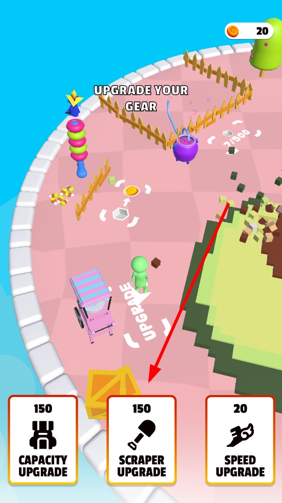2、前往升级界面,消耗金币提升背包容量、挖掘速度或工具等级,角色能够高效采集,为探索更广阔区域储备实力。