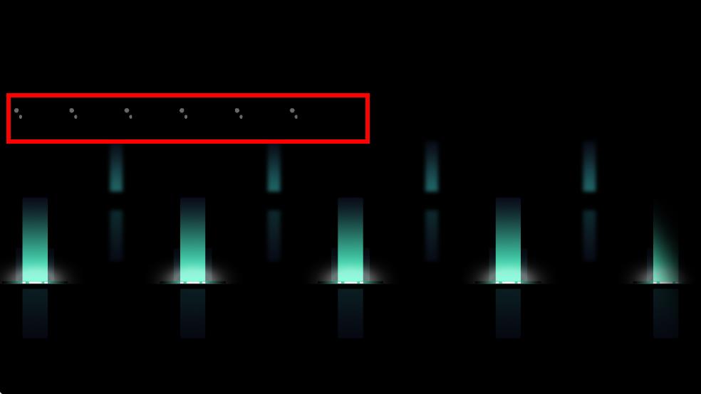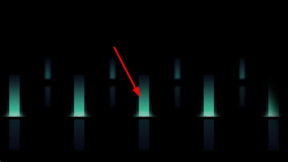 2、我们按箭头指引,操控光点跳跃绿色光柱,注意节奏,避开掉落风险,持续向前。
