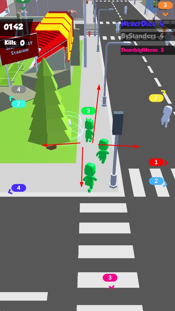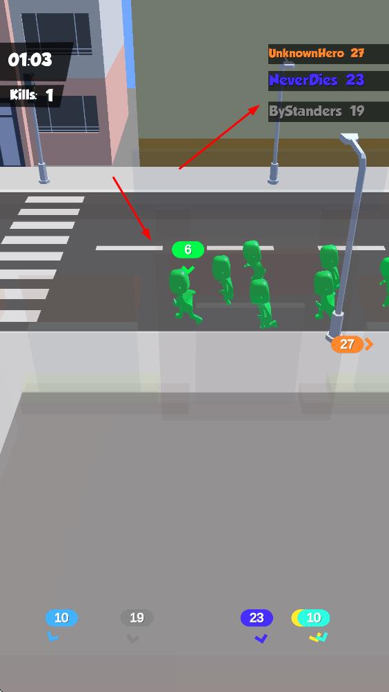 2、颜色区分敌友关系:小人队伍以颜色区分,玩家需根据人群颜色判断对方是敌是友同色为队友或自身队伍,异色为对手,清晰的视觉标识帮助玩家快速决策。