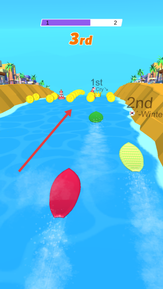 2、竞速策略规划:优先选择浪力强的路线借助推力加速,避开暗礁、漩涡等障碍物节省时间,超越对手时保持安全距离防止碰撞,终点前全力冲刺锁定冠军位置。