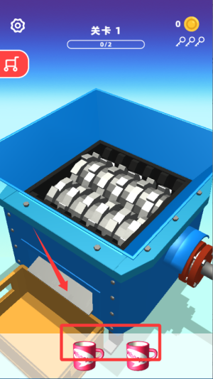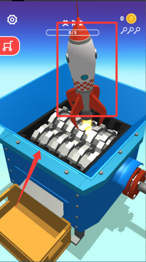 1、进入关卡后先观察可粉碎的物体位置,把它们推到粉碎机口,启动机器就能看到物体被压碎,过程特别解压。