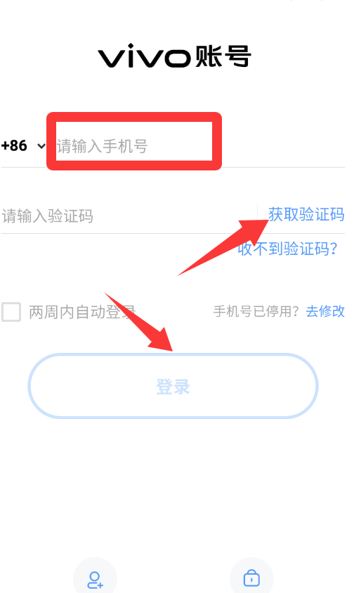 2、输入手机号码获取验证码点击登录。