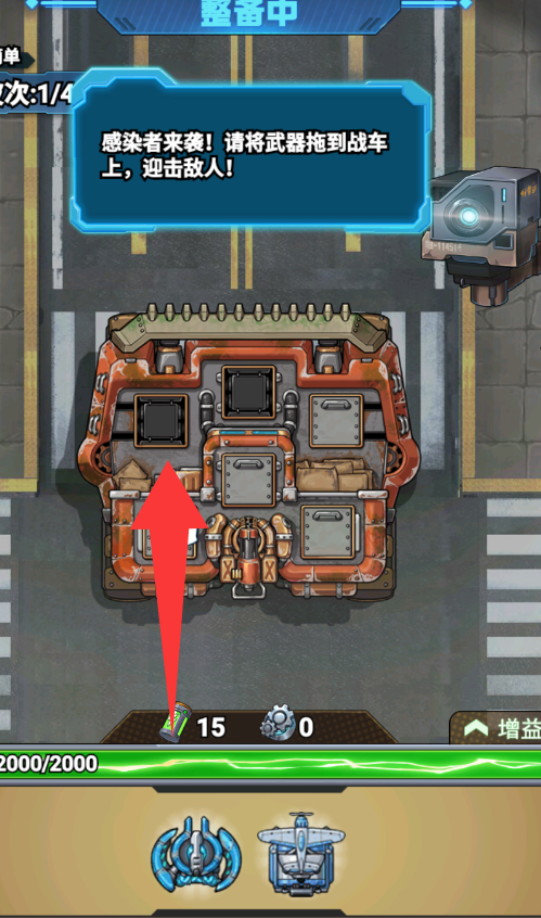 3、感染者来袭,点击移动武器到战车上。