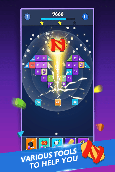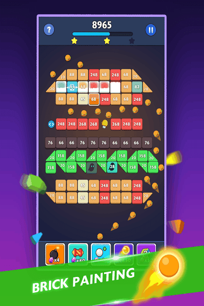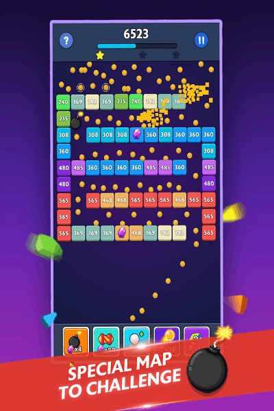 1、创新的物理引擎带来真实的弹珠碰撞体验,每次发射后的反弹轨迹都经过精确计算,不同的方块会产生独特的碰撞效果。