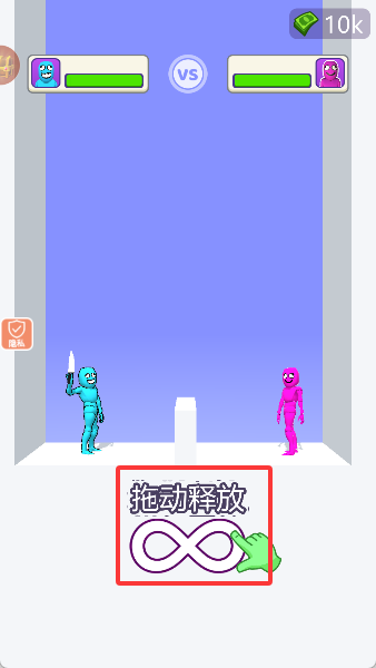 4、滑动屏幕即可拖动武器释放,进行攻击。