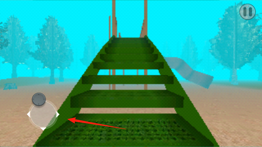 1、开局有滑梯不要滑第八次提示,操控角色通过摇杆接近绿色滑梯。