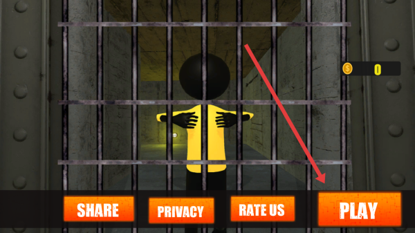 1、点击界面右侧橙色PLAY按钮,进入游戏流程,操控火柴人开启越狱主题的冒险之旅。