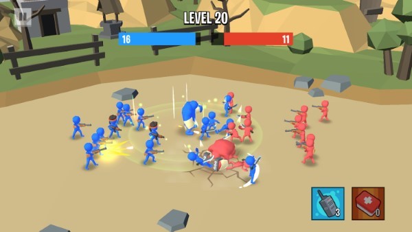 2、在战斗过程中,通过合理的战术安排和操作,指挥蓝色小人军团进攻红色小人军团,击败敌人。