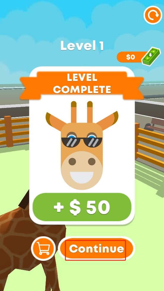 3、成功让所有坏蛋离场后,点击界面底部橙色的Continue按钮,进入下一关挑战,借助积累的金币解锁新内容。