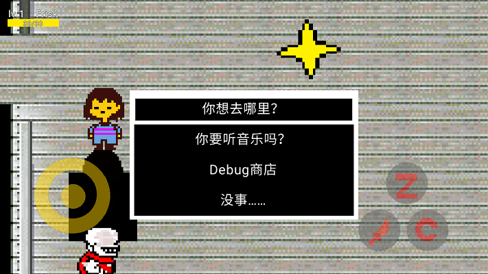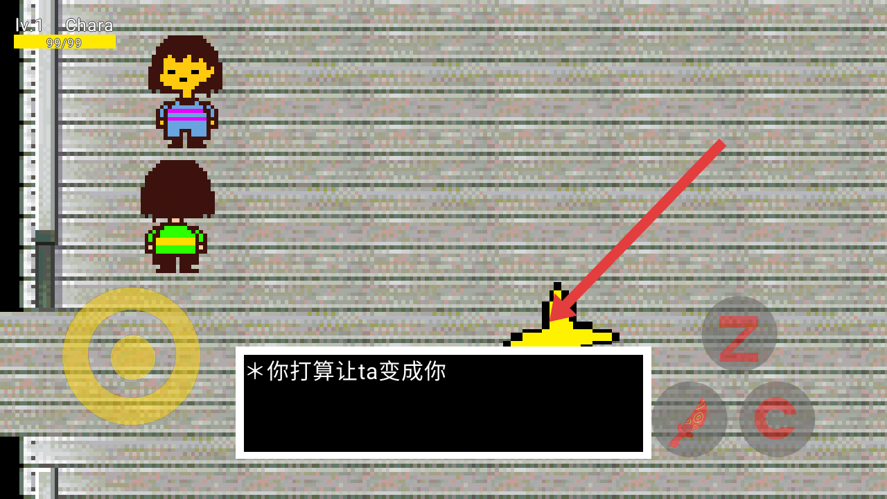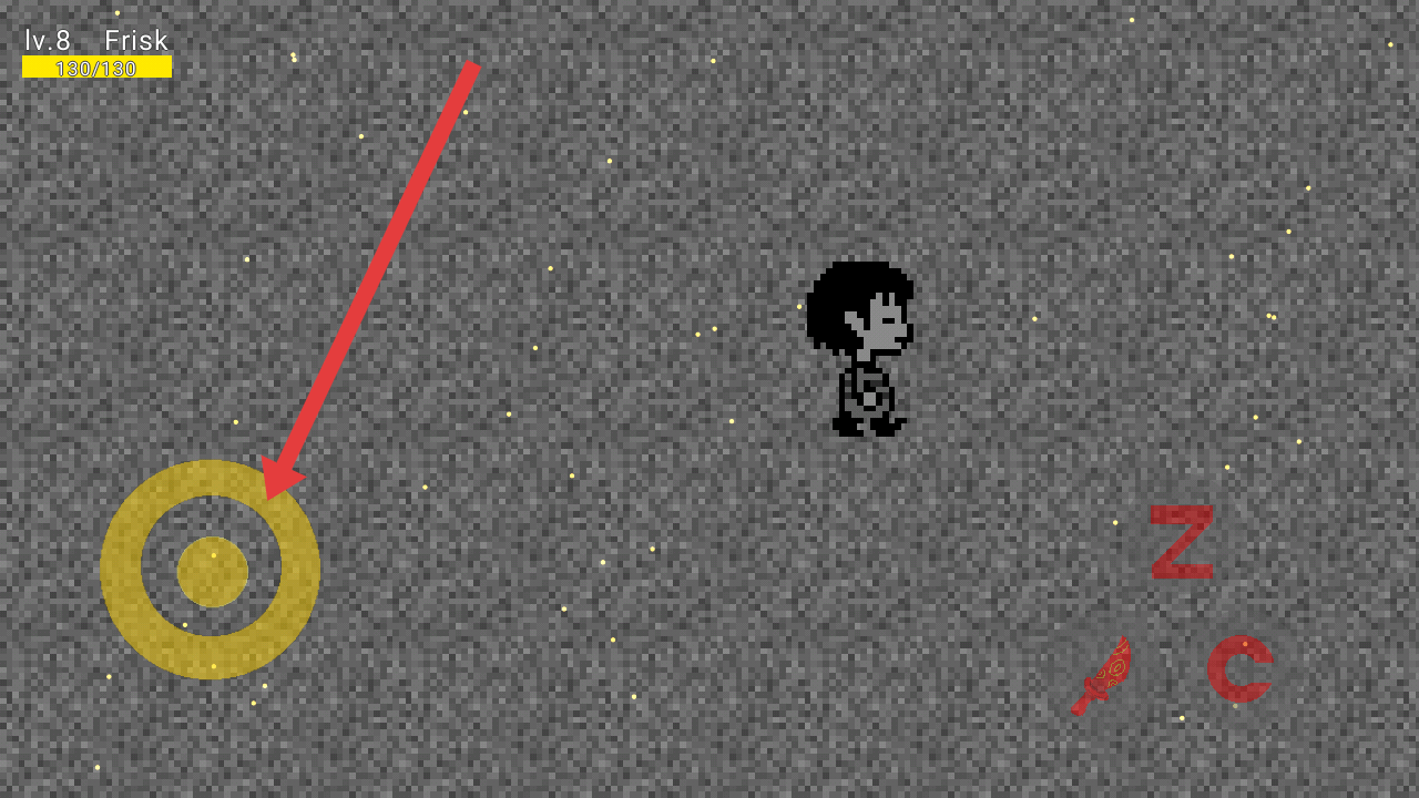 3、长按金色圆形虚拟摇杆,控制角色Frisk在场景移动,通过摇杆调整方向,探索这个充满灰色的世界。