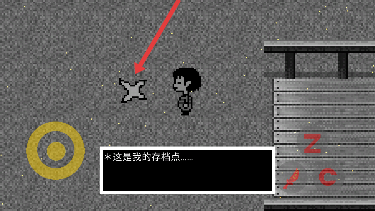 2、靠近灰色叉形存档点,触发文本这是我的存档点……,存档点可保存当前游戏进度,同时恢复角色HP。