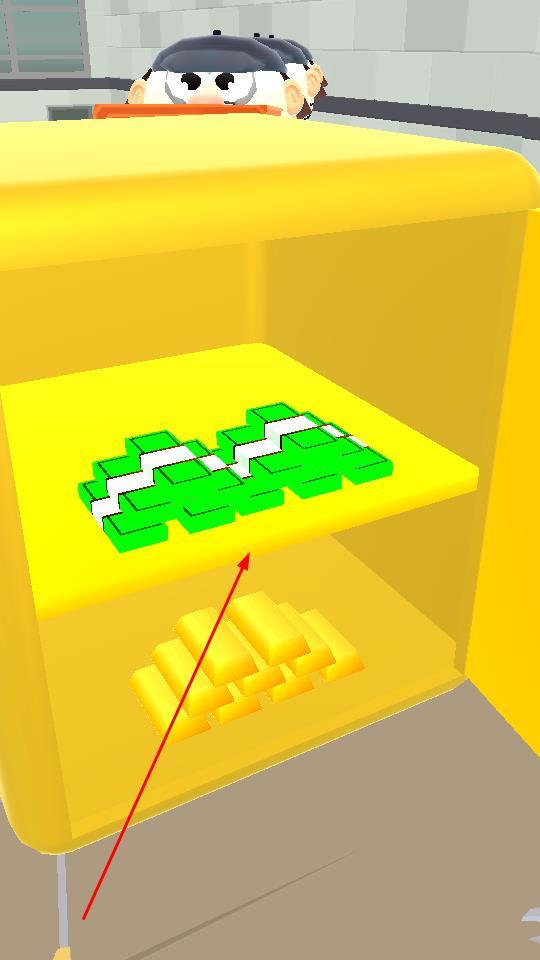 2、表盘解密成功后,保险箱门自动开启,内部展示绿色像素风格块状物品与金条,背景角色同步出现互动反馈,收集这些奖励,用于后续游戏的内容解锁、道具兑换等环节。