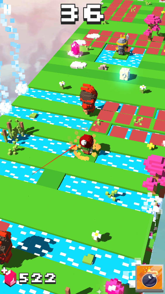 3、长按屏幕,忍者会蓄力,蓄力可以冲刺一小段距离,时刻注意路上出现的问号小方块,可能是很有用的道具。
