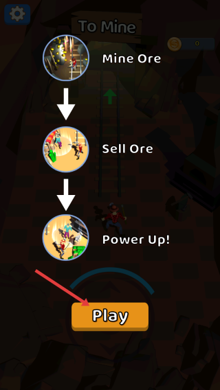 1、在游戏开始界面,点击Play按钮,进入游戏,按照游戏流程,依次进行采矿、出售矿石和升级等操作,开启游戏挑战。