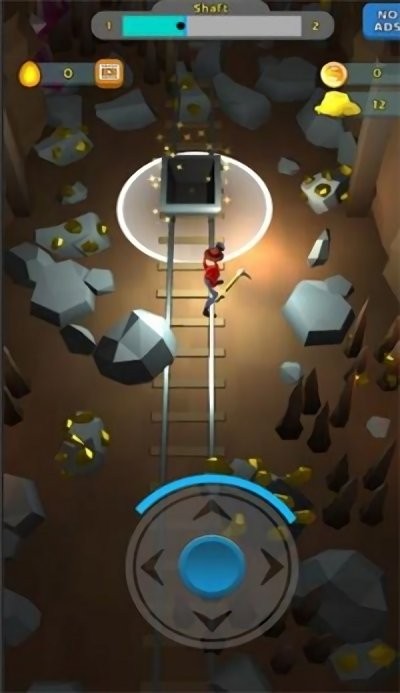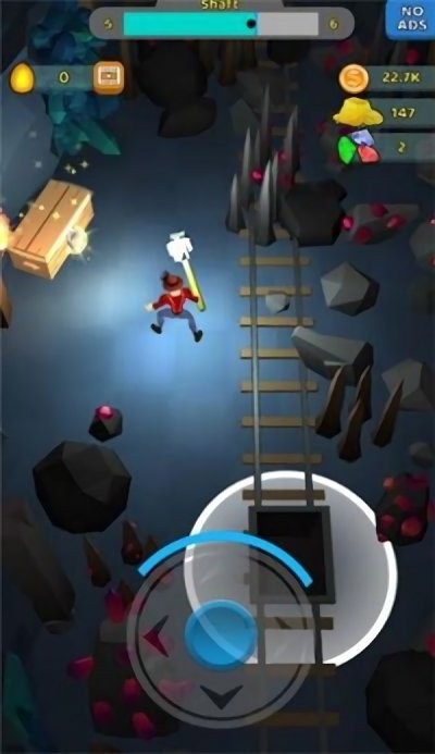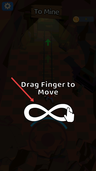 2、在游戏过程中,根据界面提示Drag Finger to Move,用手指滑动屏幕,控制角色的移动方向,在矿洞中移动,寻找矿石资源。