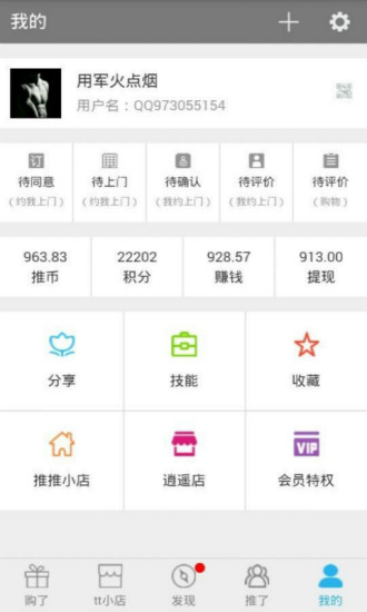 1.会员之间可以聊天互动赚推币,也可以分享购物赚推币。推币就是钱,可自行变现提到银行卡!