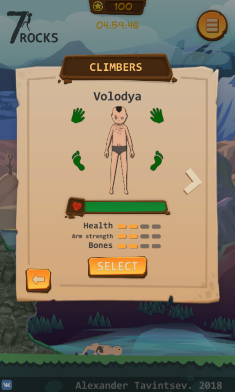 1、进入游戏后,选择心仪的角色,从7种岩石中挑选初始挑战目标,通过单指操控棍子开始攀岩,迈出登顶的第一步。