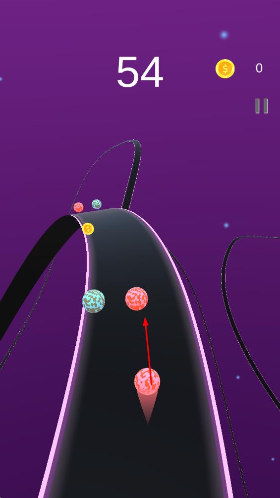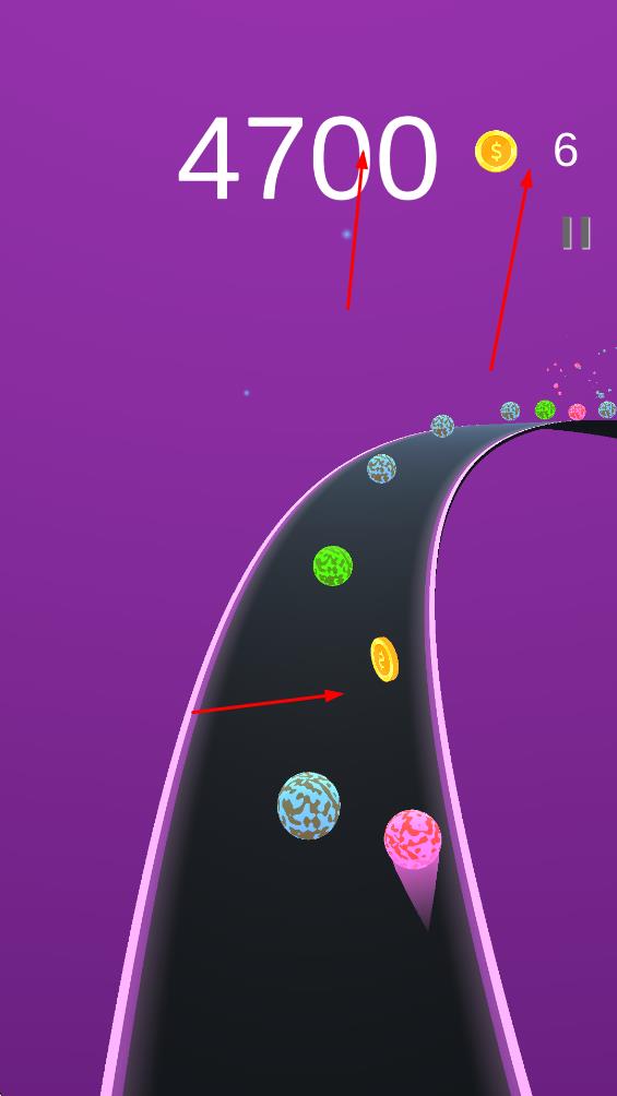 2、留意赛道上的金币,引导球体收集金币,同时注意避让其他彩色球体,保障滚动节奏。