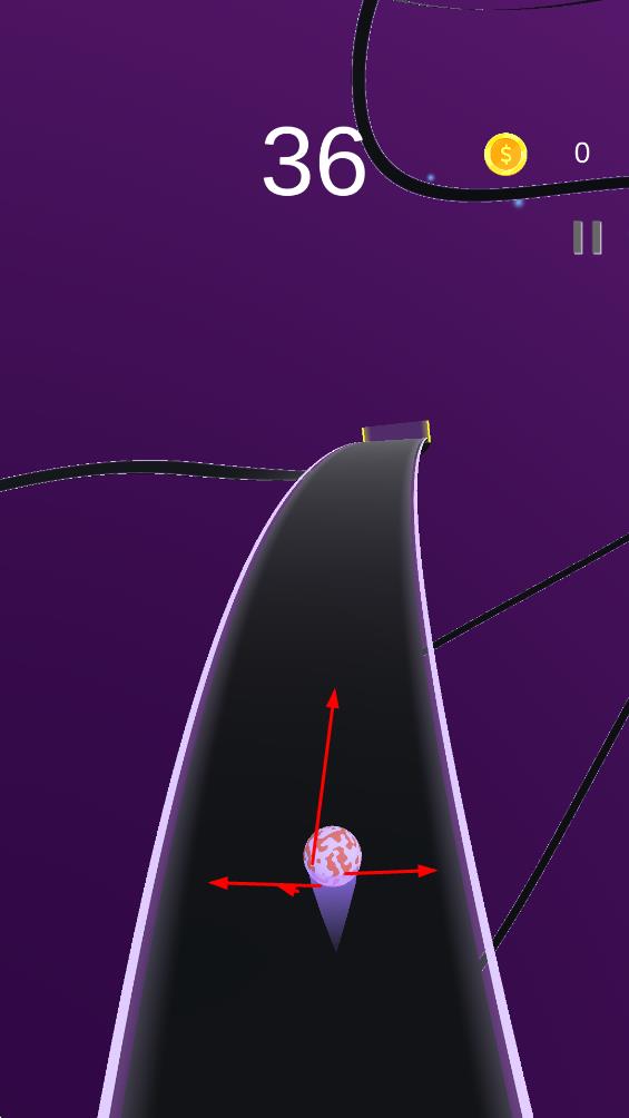 1、操控彩色球体在弯曲赛道上滚动,通过调整方向应对赛道的弯曲变化,开启跑酷挑战。