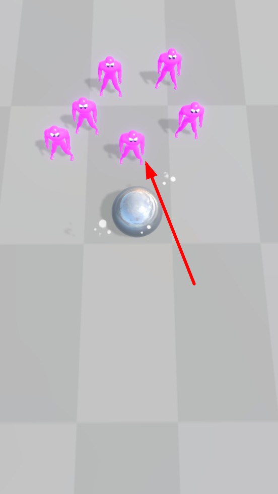 1、进入关卡,滑动屏幕控制滚动方向,观察敌人的位置分布,拿起铁球,优先冲击密集的粉色敌人,利用初始速度制造连锁碰撞。