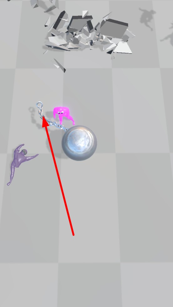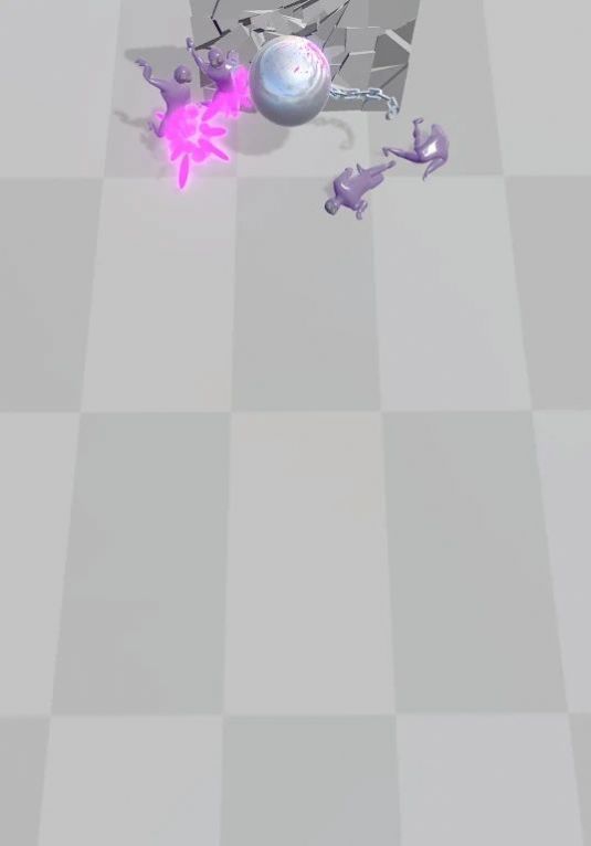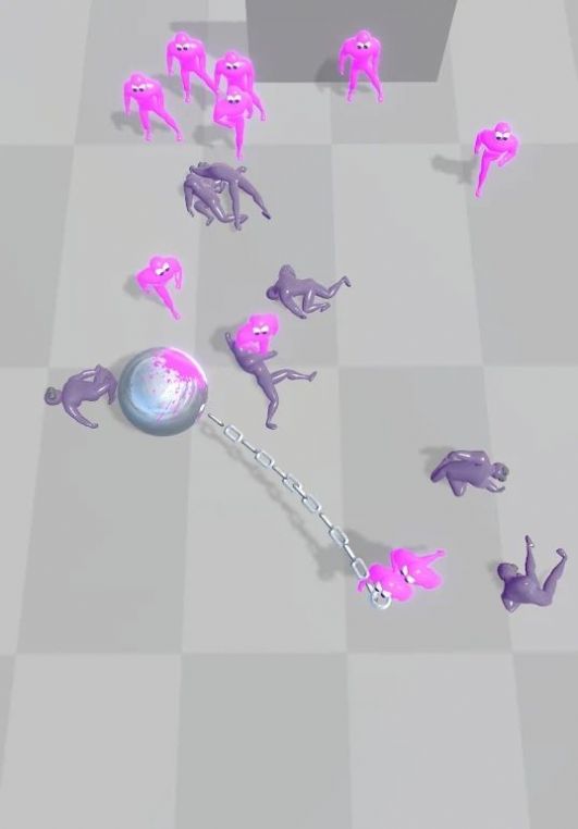 2、粉色小人被击中,会变成紫色后消失,铁球挥舞时也会击碎旁边的障碍物,带来更解压的游玩体验。