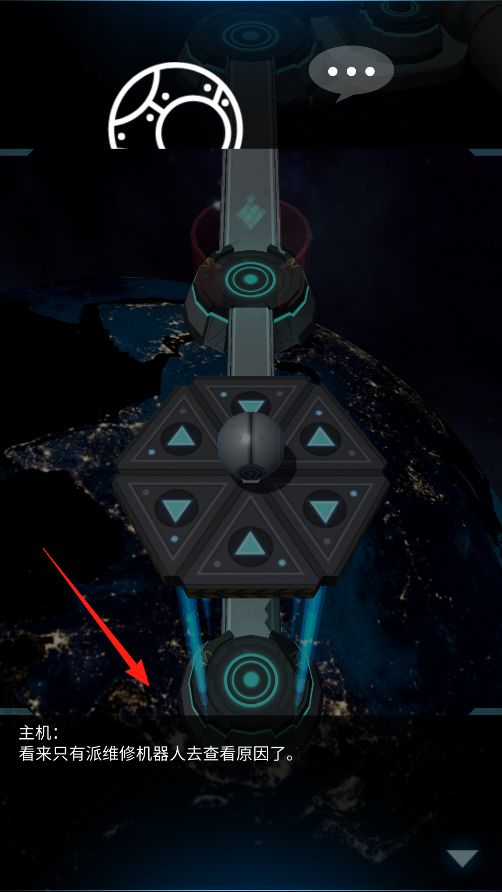 1、进入太空场景界面,看到主机说派维修机器人查原因,跟着指引,关注下方主机对话,了解任务背景,准备操控维修机器人,去探索空间站故障,开启太空冒险解谜。