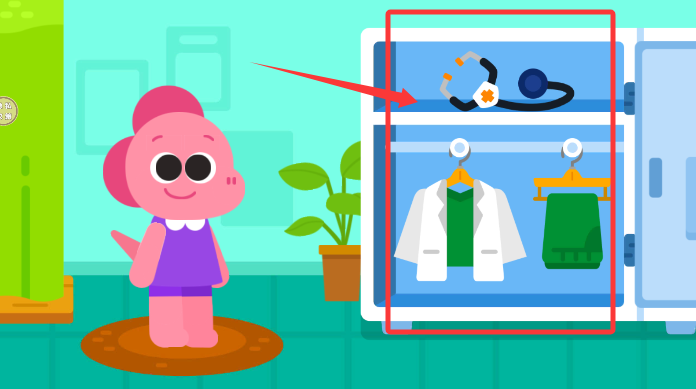 2、在更衣区挑选合身的医生制服,穿戴整齐变身小小白衣天使。