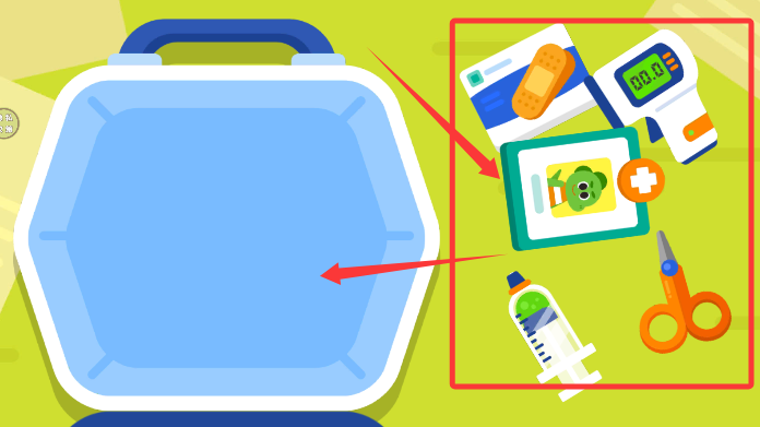 3、前往器材室准备医药箱,装入听诊器、绷带等基础诊疗工具。