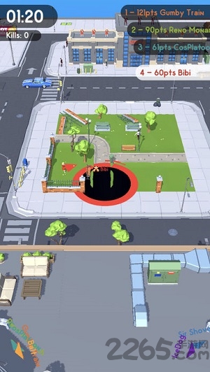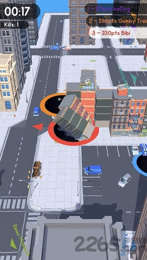 3、如果玩家不想吞噬其他玩家,也可以选择做佛系黑洞,吃楼房、小车子等道具来慢慢成长,为玩家提供不同的游戏选择。
