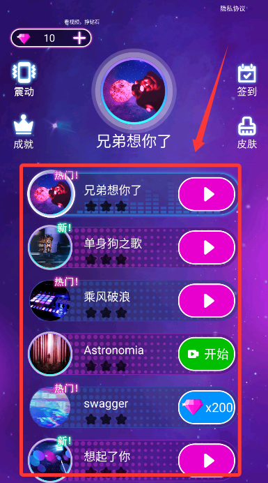2、浏览曲库选择心动曲目,轻触播放键即可开启节奏挑战之旅。