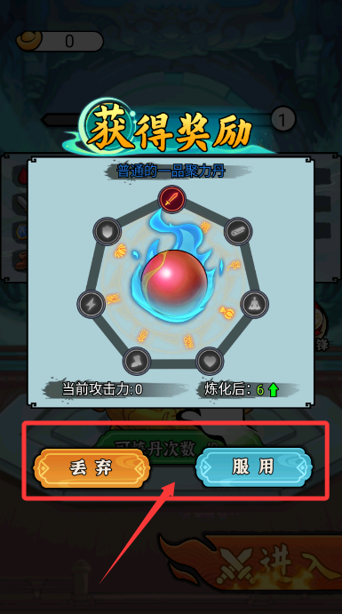 3、成功炼制后出现选项,可吸收丹药提升能力或放弃当前成果。