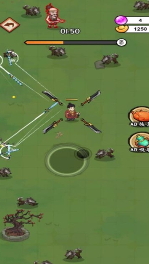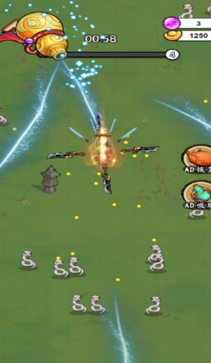 1、创新的旋转刀具战斗系统带来割草快感,武器会随着角色移动划出绚丽轨迹,动态效果让每次斩击都充满视觉冲击力。