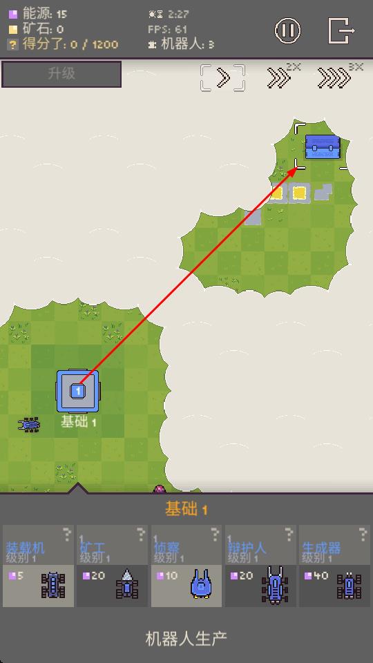 2、操控已生产的机器人移动探索,清除地图敌方单位,逐步拓展阵地,收集资源与奖励。