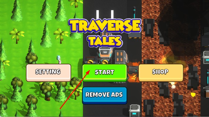 1、进入界面,点击START按钮,选择开始游戏,操控人物进入过马路的障碍赛跑场景。